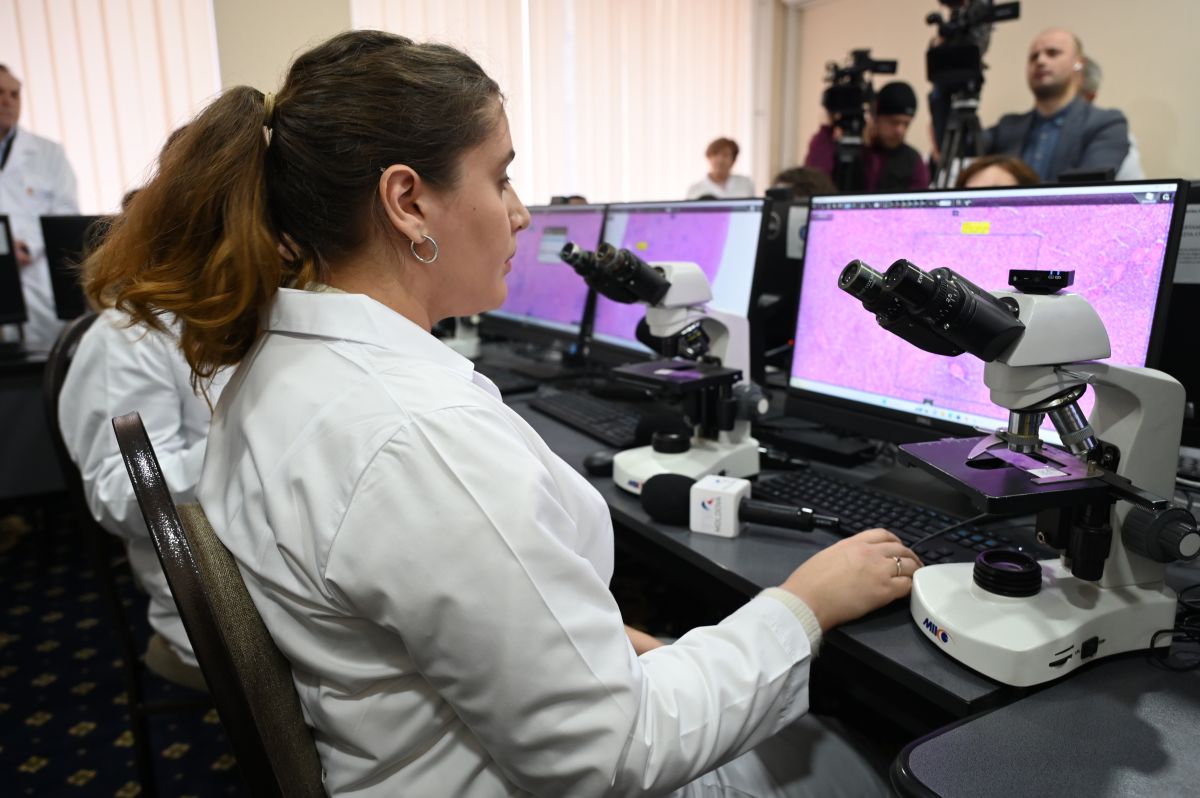 Mihail Parlov, head of studies at the Department of Pathology, together with a team of resident doctors, demonstrated the functionality and advantages of this diagnostic and image analysis system.